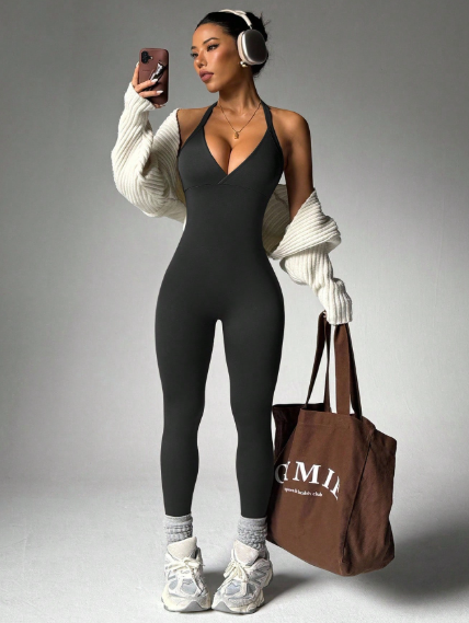 Enterizo corto ajustado con diseño cruzado y espalda descubierta