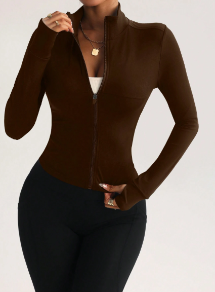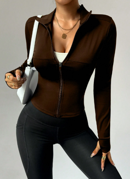 Chaqueta de yoga de manga larga, con cierre, ajustada, minimalista, elegante y sexy para mujer, ideal para yoga, running, fitness y otras actividades al aire libre.