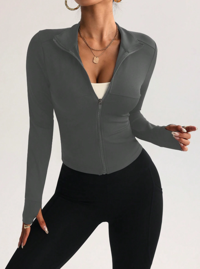 Chaqueta de yoga de manga larga con cremallera, elástica, de moda, elegante y sexy, con ajuste ceñido, para fitness, running y actividades al aire libre