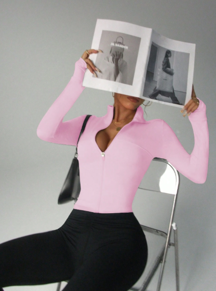 Chaqueta de yoga de manga larga minimalista, elegante, ajustada y sexy para mujer, ideal para yoga, entrenamiento, running, uso diario, protección solar y un look deportivo de alta gama
