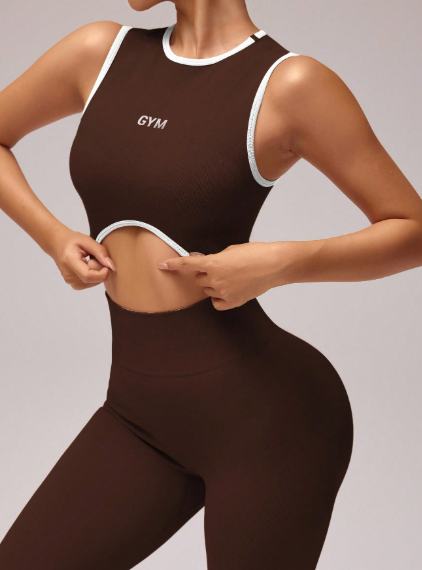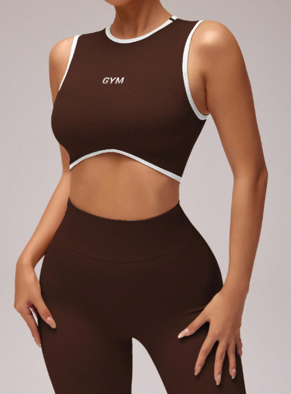 Conjunto deportivo de camiseta de tirantes con gráfico de letras y leggings para mujer
