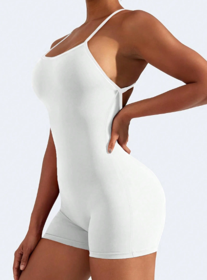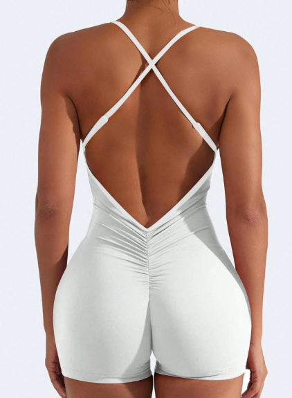 Enterizo corto de yoga de una pieza con almohadillas de sujetador desmontables, diseño de espalda cruzada, glúteos con forma de melocotón favorecedora, mono de fitness, pantalones cortos elásticos de cinco puntos, estilo para mujer.