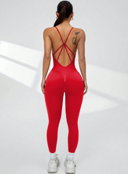 Enterizo largo deportivo para mujer con espalda cruzada, pantalón largo para yoga y fitnes