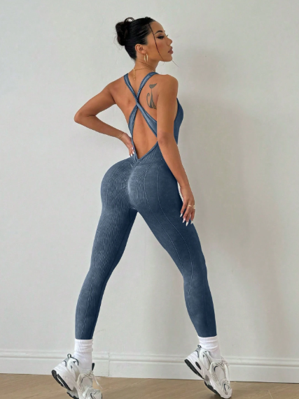 Enterizo largo para mujer con espalda cruzada abierta y unicolor