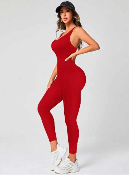 Enterizo largo sin costuras con espalda de cruz de unicolor