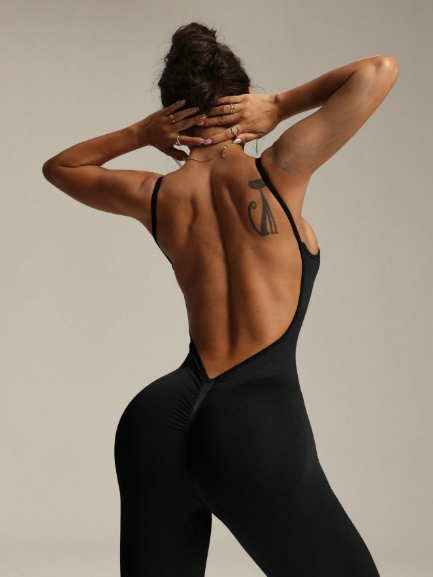Enterizo largo de unicolor sin espalda y sin mangas, sin costuras