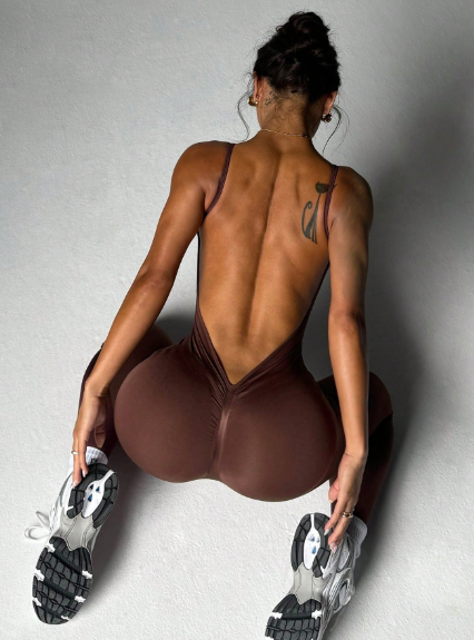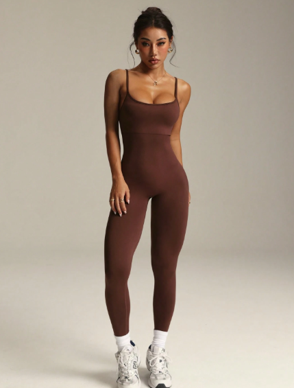 Enterizo largo deportivo de unicolor sin espalda y sin mangas, sin costuras