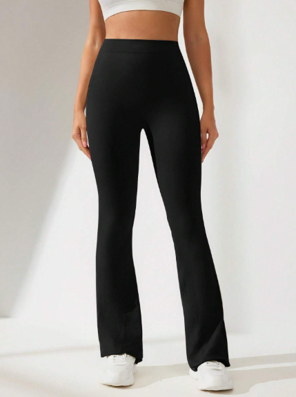 Pantalones deportivos de ajuste ceñido con pierna acampanada y cintura en V de unicolor, aptos para yoga y actividades al aire libre